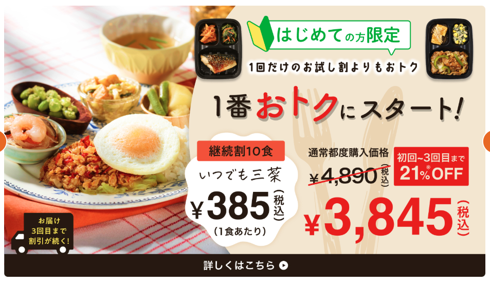 和洋中さまざまなジャンルのメニューが用意されており、飽きずに続けられます。 - 4. 定期購入での割引特典